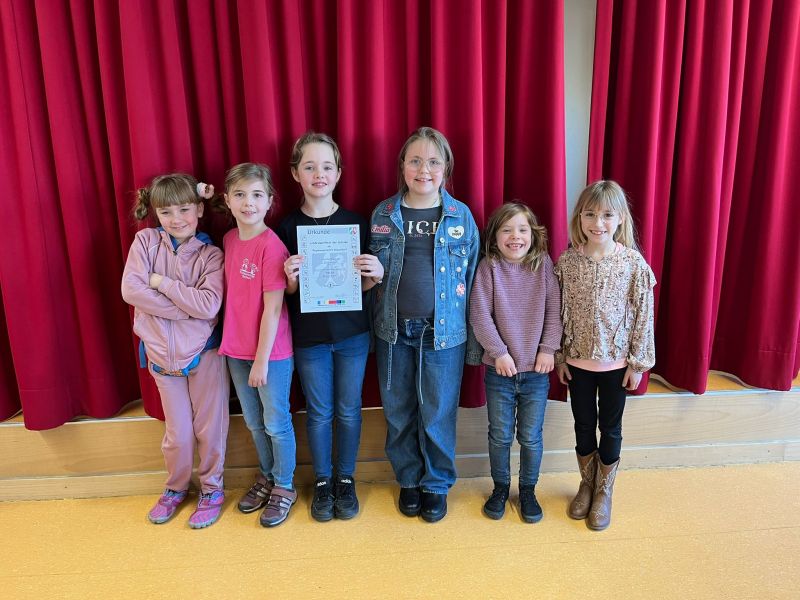 Platz 2 ging an unsere 3. Mannschaft, die als reines Mädchenteam mit Zoe Wurzbacher (4d), Emily Plog (4d), Lina Urh (4d), Valesca Murrau (1b), Mathilda Mallach (2c) und Emilia Helmerking (4d) antrat und gegen unsere 2. Mannschaft gewann sowie gegen unsere 4. Mannschaft 2:2 spielte. Zoe war dabei an Brett 1 mit 7 Punkten aus 7 Runden besonders erfolgreich.